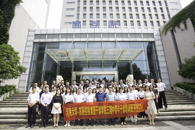 7月23日,CQ9cq9电子干部学院(党校)“第三期中青年干部培训班”在河海大学商学院开班。CQ9cq9电子党委副书记、干部学院(党校)院长姚蓓作开班动员,河海大学商学院院长周海炜教授致欢迎辞,河海大学商学院党委书记吴宝海出